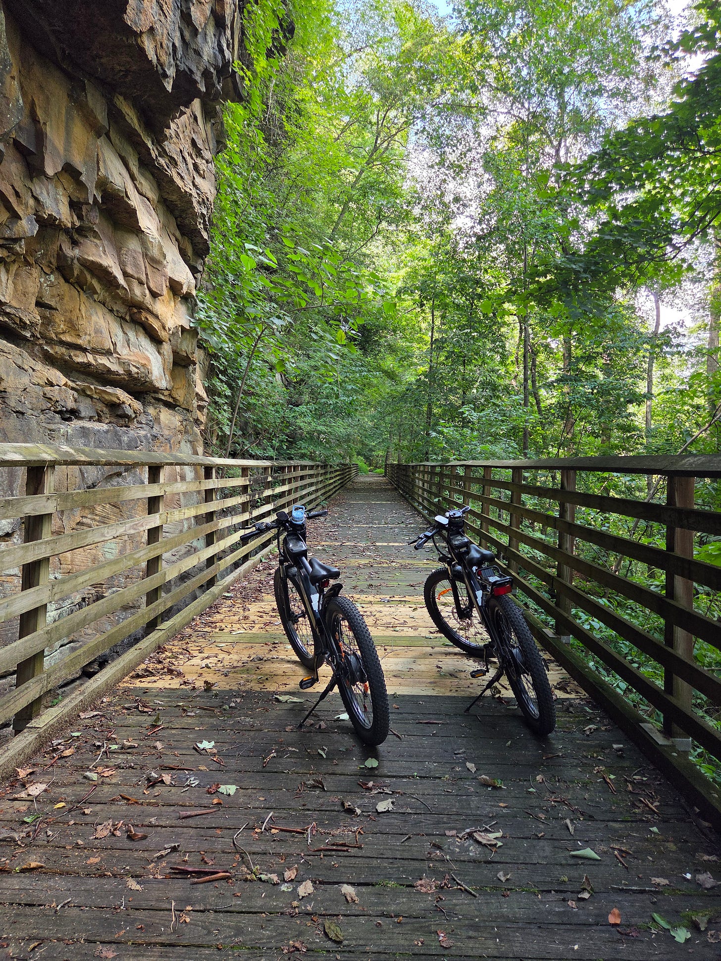 The Elk River Trail stretches through one of the most peaceful valleys in central West Virginia. Riders follow the river for miles, passing through thick forests, rocky bluffs, and quiet farmland. Wildlife is common along this path, especially deer, herons, and the occasional bald eagle. The trail has a smooth surface, which makes it great for riders of all ages. It also connects several small communities, giving visitors places to stop for lunch or sightseeing during their ride.